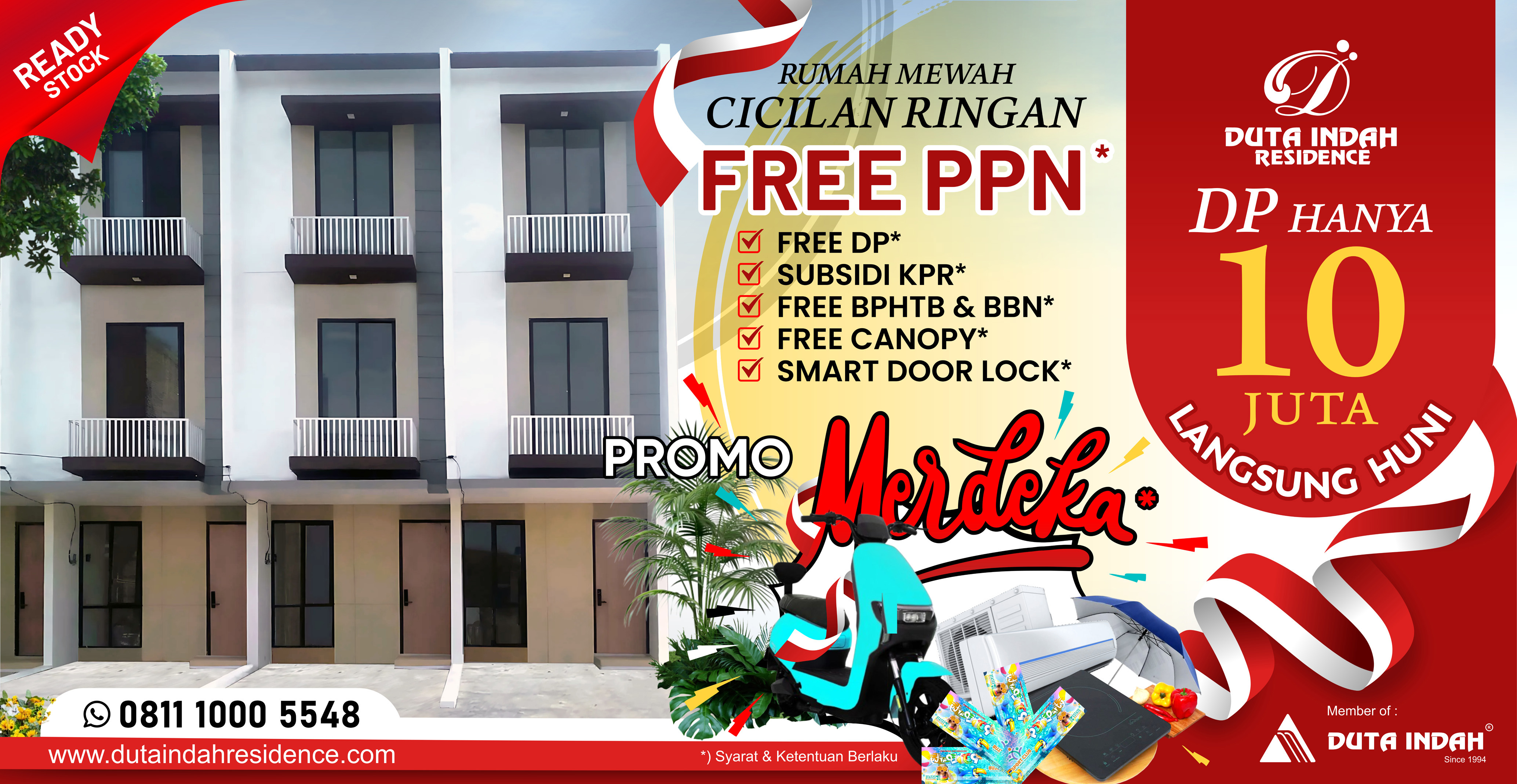 Semangat suka cita menyambut HUT RI yang ke-80 thn, Duta Indah Residence bagi-bagi 🎊🎉Promo Merdeka!!! 🎉🎊 spesial diberikan untuk setiap pembelian produk properti Duta Indah Residence.
